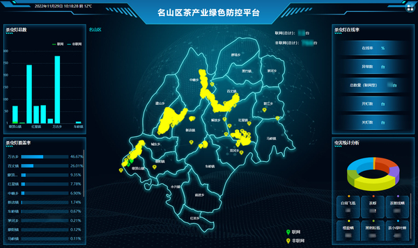 雅安名山位于成都平原西南邊緣,擁有茶園面積35萬畝左右,揚子江心水,蒙山頂上茶,千百年來被廣為傳頌。為進一步提質(zhì)增效,打造全國高品質(zhì)茶葉基地,打響蒙頂山茶品牌,雅安名山區(qū)目前已在核心區(qū)域布設(shè)天敵友好型茶園殺蟲燈900余臺,逐步完善茶園綠色防控體系的建設(shè),通過特制的LED誘蟲光源,針對茶園主要害蟲精準防控,大大減少茶園化學(xué)農(nóng)藥的施用次數(shù)和施用量,保障茶葉品質(zhì)及生態(tài)環(huán)境安全,實現(xiàn)綠色高質(zhì)量發(fā)展。